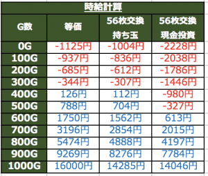 | 狙い目(56枚持ちメダル) | 640G〜 |