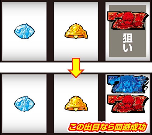 - 3択リプレイ正解(中段リリベ)停止時はRT2移行もしくはRT2滞在中濃厚となるため、押し順ベルこぼし(中段リベべ)まで1枚役狙う