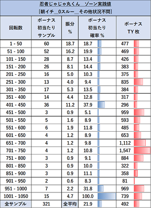 SLOT忍者じゃじゃ丸くん ゾーン当選表
