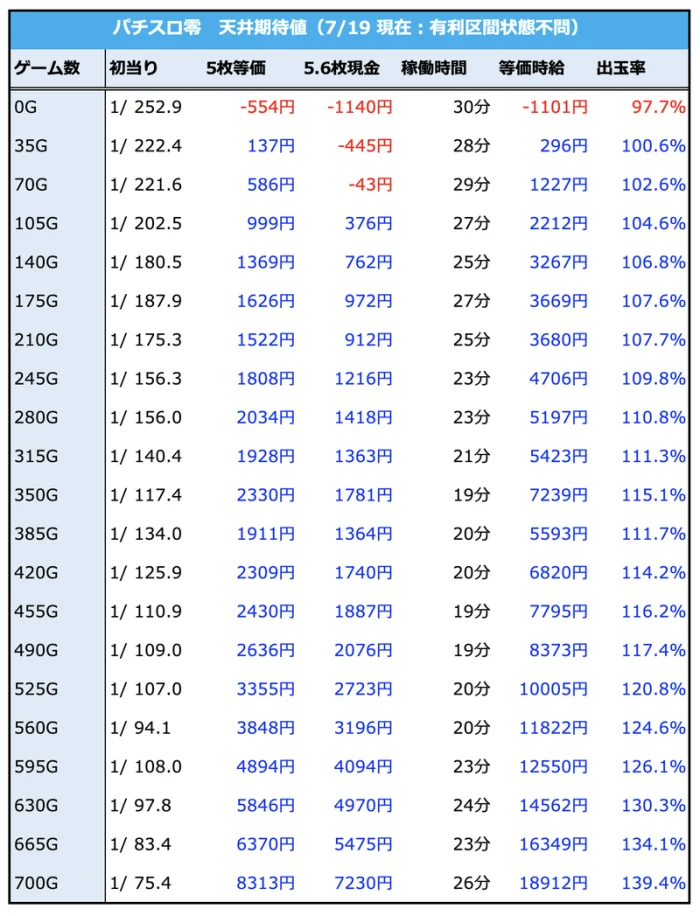 また、零ボーナス自体の期待枚数が低く、0~100Gの区間はかなり辛めの設計となっています。