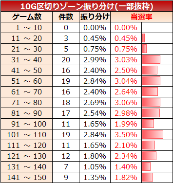 設定 低確A 低確B 高確 超高確 1 39.8% 19.9% 30.1% 10.2% 2 3 34.8% 25.0% 4 19.9% 35.2% 5 30.0% 25.0% 6 30.1% 19.9% 39.8%